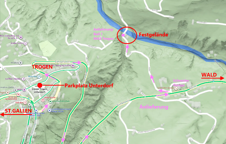 - Ort des Parkplatz: Unterdorf, 9043 Trogen